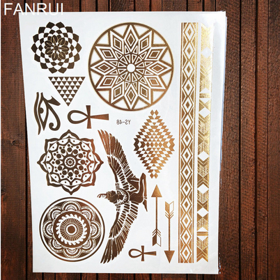 Egyptian Colorful Gold Henna Pattern Temporary Tattoo